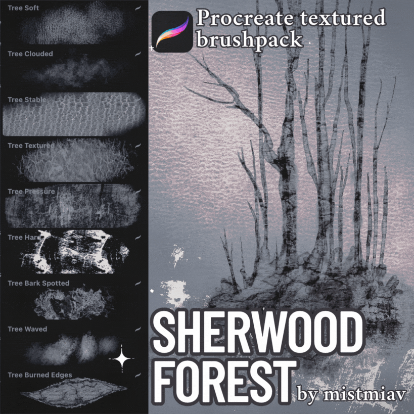This brushpack contains textures gathered by me from the Sherwood Forest trees, so you can use them in your beautiful art woods!